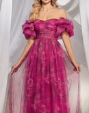 BluePlum - BluePlum Elegant Premium puff sleeve Evening Dress Long 2024 Luxury Women Chiffon Short Sleeve Party Dress Prom Cocktail Dress