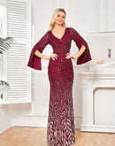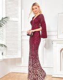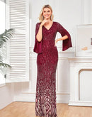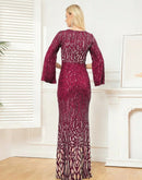 BluePlum Elegant Sequin Burgundy Red Evening Dress 2024 Women Formal Maxi Prom Long Sleeves Party Dress Luxury Cocktail Dress | Blue Plum
