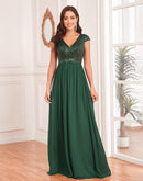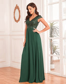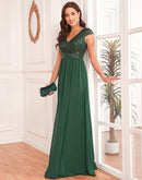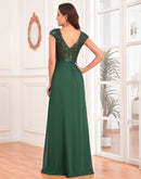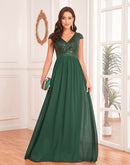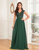 BluePlum Elegant Sequins Sleeveless Evening Dress Women 2024 V Neck Green Wedding Party Graduation Prom Chiffon Cocktail Gowns | Blue Plum