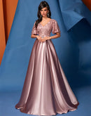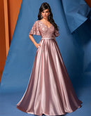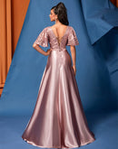 BluePlum Elegant Short Sleeve Pink Satin Formal Evening Dress Luxury Long Women Mermaid Wedding Party Dress Cocktail Prom | Blue Plum
