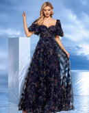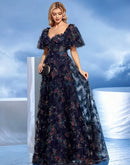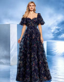 BLUEPLUM Evening Dress: Short Sleeve Floral Mermaid Gown | Blue Plum