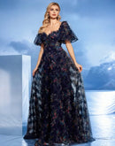 - BLUEPLUM Evening Dress: Short Sleeve Floral Mermaid Gown | Blue Plum