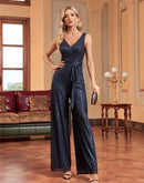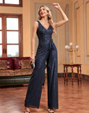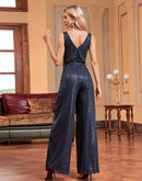 BluePlum Luxury V-neck Sequin Blue Evening Dress Women Formal Prom Party Gown Women 2024 Sexy Sleeveless Galadress Vestidos Pant | Blue Plum