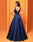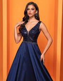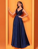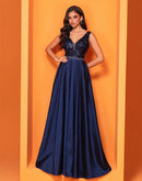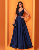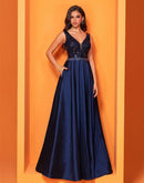 - Luxury Sexy Deep V-Neck Sequins Blue Evening Dress Women Elegant V-back Satin Party Long Prom Cocktail Dress | Blue Plum