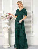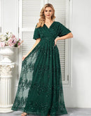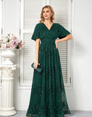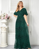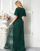 Sparkling Green Short Sleeve Evening Dress | Blue Plum