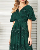 - Sparkling Green Short Sleeve Evening Dress | Blue Plum