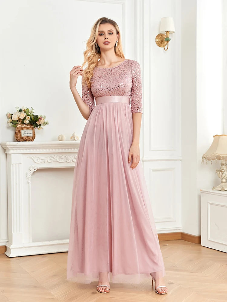 Features: This elegant evening dress combines luxury and style with its modern design, featuring short sleeves and exquisite sequin embellishments. Perfect for weddings, cocktail parties, or proms, it offers a flattering A-line...