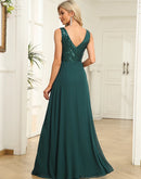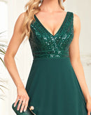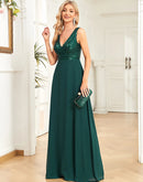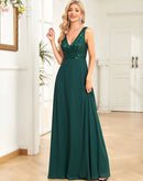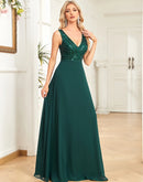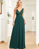 BluePlum Elegant Chiffon Prom Dress Long Sexy V Neck A-Line Sequin Formal Evening Dress 2024 Women Dark Green Bridesmaid Dress | Blue Plum