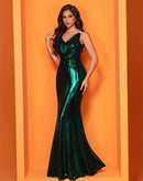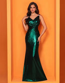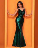 Features: Elevate your evening wardrobe with the BluePlum Elegant Evening Dress, featuring a stunning glittery design and a flattering mermaid silhouette. This sleeveless, empire waist dress is perfect for any formal occasion, including proms, weddings, and parties. The V-neckline and backless style add a touch of sophistication, making it an ideal choice for modern fashion enthusiasts. Customized options are available to ensure a perfect fit!