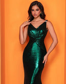 BluePlum Elegant Evening Dresses Glittery Sleeveless Pleated Empire Waist 2024 Green Mermaid Party Prom Bridesmaid Dress | Blue Plum