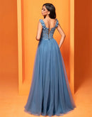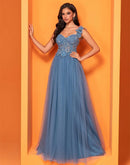 Tags: backless dress, blue bridesmaid gown, blue tulle dress, bridesmaid dress, cocktail dress, elegant dress, evening wear, formal gown, long bridesmaid dress, luxury gown, party dress, prom dress, sexy dress, special occasion dress, wedding party dress, women's dress