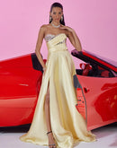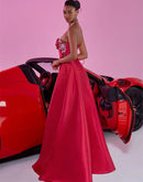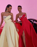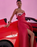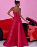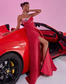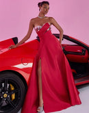 - Blueplum Red Satin Split A-line Evening Dress | Blue Plum