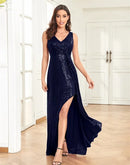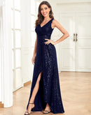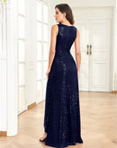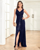 Sequin Blue Evening Dress with Split Maxi Gown | Blue Plum
