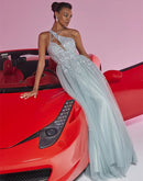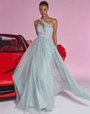 Green Tulle Oblique Shoulder Bridesmaid Dress | Blue Plum