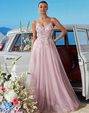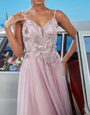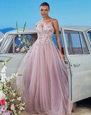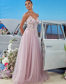 Pink V-neck Bridesmaid Evening Dress with Blueplum Suspenders | Blue Plum