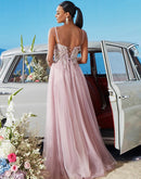- Pink V-neck Bridesmaid Evening Dress with Blueplum Suspenders | Blue Plum