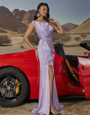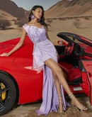 BluePlum Elegant Satin Split Evening Gown | Blue Plum