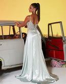 Elegant Blue Satin Mermaid Maxi Dress | Blue Plum