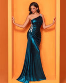 BluePlum New Luxury Green Women Party Maxi Dress Elegant One-shoulder Slit Evening Dress Ribbon Long Bridesmaid Dresses | Blue Plum