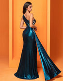 Features: Elevate your formal wear with this luxurious one-shoulder green maxi dress, perfect for parties and elegant occasions. The exquisite backless design and floor-length silhouette offer a stunning appeal, while the sleeveless cut ensures comfort and freedom of movement. Ideal for women of all ages, this dress is adorned with a stylish slit. Made from high-quality spandex and polyester, it combines elegance with durability, ensuring you look fabulous all night long.