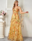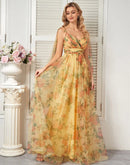Yellow V-Neck Evening Dress - BLUEPLUM Luxury | Blue Plum