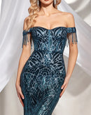 Features: This Elegant Sequin Blue Evening Dress is the epitome of luxury and sophistication. Designed for formal occasions, it boasts a striking mermaid silhouette and exquisite craftsmanship. The strapless neckline...