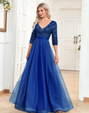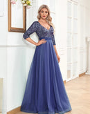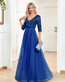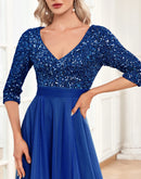 - Sequin Blue Formal Evening Dress - Elegant Luxury Gown | Blue Plum