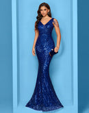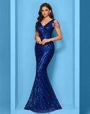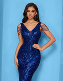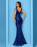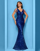 Blueplum V-Neck Beaded Sequin Evening Dress | Blue Plum