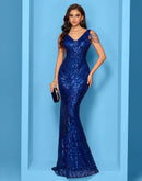 - Blueplum V-Neck Beaded Sequin Evening Dress | Blue Plum