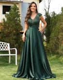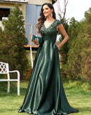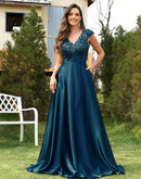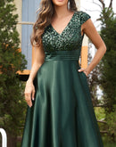 - Luxury Blue Sequins V-Neck Evening Gown | Blue Plum