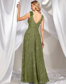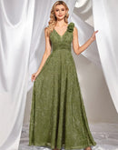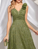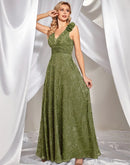 BluePlum Elegant V Neck Green Floral Evening Dress Long 2024 Luxury Women Chiffon Sleevesless Party Dress Prom Cocktail Dress | Blue Plum