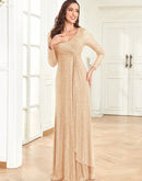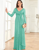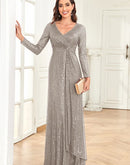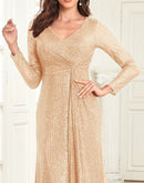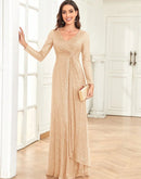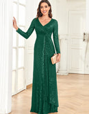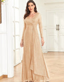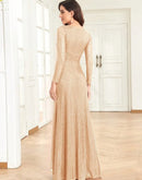 BLUEPLUM Elegant Gold Sequin V-Neck Maxi Evening Dress | Blue Plum