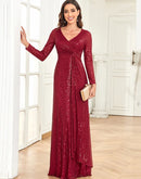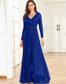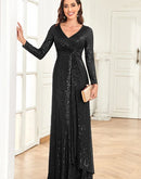 - BLUEPLUM Elegant Gold Sequin V-Neck Maxi Evening Dress | Blue Plum