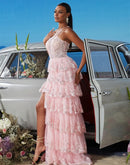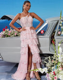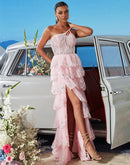 - Luxury Oblique Shoulder Pink Slit Chiffon Mermaid Evening Dress | Blue Plum