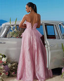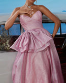 BLUEPLUM Off-shoulder Bow Pink Evening Dress - Elegant Women's A-line Gown | Blue Plum