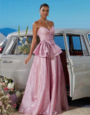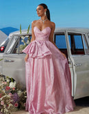 - BLUEPLUM Off-shoulder Bow Pink Evening Dress - Elegant Women's A-line Gown | Blue Plum