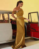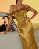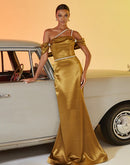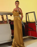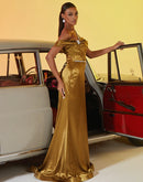 BLUEPLUM Luxury Tube Top Gold Mermaid Evening Dress | Blue Plum