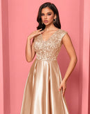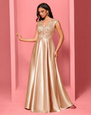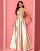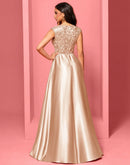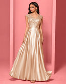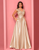 Luxury Blueplum Gold Satin V-Neck Sequin Evening Dress | Blue Plum