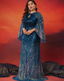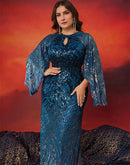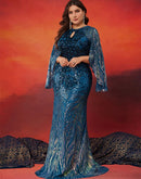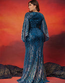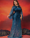BluePlum Sequin Long Sleeve Plus Size Evening Dress | Blue Plum