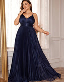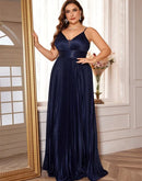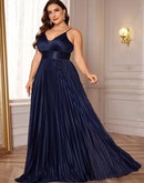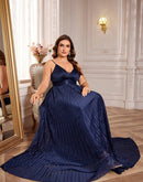 The BluePlum Plus Size V-neck Formal Evening Gown is designed to flatter with its elegant A-line silhouette, making it perfect for any formal occasion. This stunning floor-length gown features a stylish sleeveless design and a graceful V-neckline, catering to all age groups. Crafted from high-quality polyester jersey fabric, it includes a built-in bra for added comfort and support, while also being customizable to reflect your personal style.
