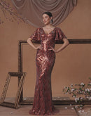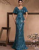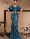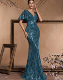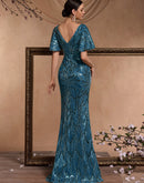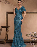 - lady's elegant short-sleeved sequined V-neck dress | Blue Plum