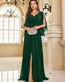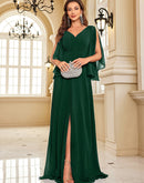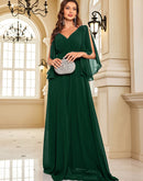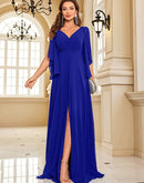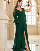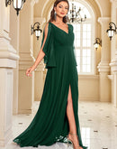 BluePlum Luxury Chiffon Long Sleeve Green Evening Dresses Sexy High Slit Women Dress V-Back Formal Wedding Party Gowns Vestidos | Blue Plum