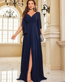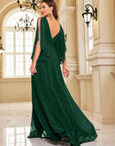 Features: This stunning evening dress is crafted from luxurious chiffon, featuring a modern, backless design and a flattering A-line silhouette. The V-neck neckline adds an elegant touch, while the high slit enhances the overall sexy appeal. Perfect for formal occasions, this dress is suitable for all ages and provides comfort with a built-in bra for added support. The chic floor-length design ensures you make a statement at any event, from weddings to evening parties.Products Detail: