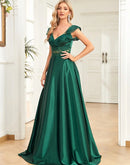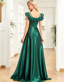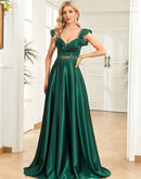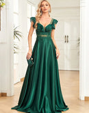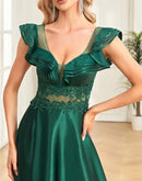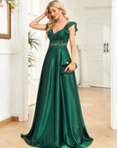 Luxury Green Satin Evening Dress - Sleeveless Deep V-Neck Maxi Gown | Blue Plum