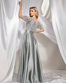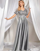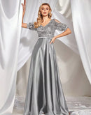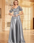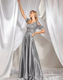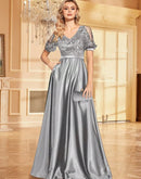 Blueplum Satin Grey Sequin Cocktail Prom Dress | Blue Plum