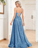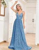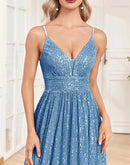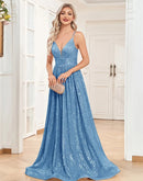 BLUEPLUM Sequins Backless Blue Evening Dress 2025 | Blue Plum