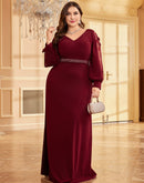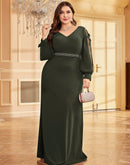 特色: BluePlum 加大码晚礼服,优雅气质,老少皆宜,现代风格精制而成。这款惊艳的拖地长裙展现独特的撞色图案,自然的腰线完美贴合身材曲线。宽大的袖子和 V 领设计更添精致优雅,是正式晚间场合的完美之选。