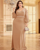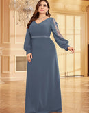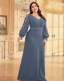 BluePlum Plus Size Elegant Blue Applique Evening Dress 2024 Women Formal Maxi Prom Long Sleeves Party Dress Luxury Cocktail Prom | Blue Plum