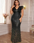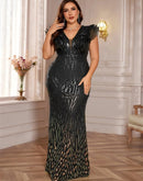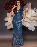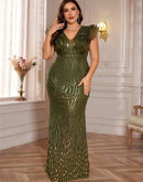 Features: Discover the epitome of elegance with our BluePlum Plus Size Elegant Green Evening Dress. This luxurious long mermaid gown is adorned with exquisite sequins, perfect for formal occasions, weddings, proms, and cocktail parties. Designed for all ages, it boasts a flattering V-neckline and a natural waistline that complements any silhouette. Its sleeveless style ensures comfort and gives a chic look, making it a must-have for your special events.