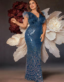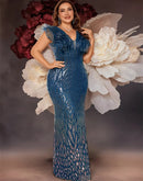 BluePlum Plus Size Elegant Green Evening Dress For Women Luxury Long Mermaid Formal Sequins Prom Wedding Party Cocktail Gowns | Blue Plum